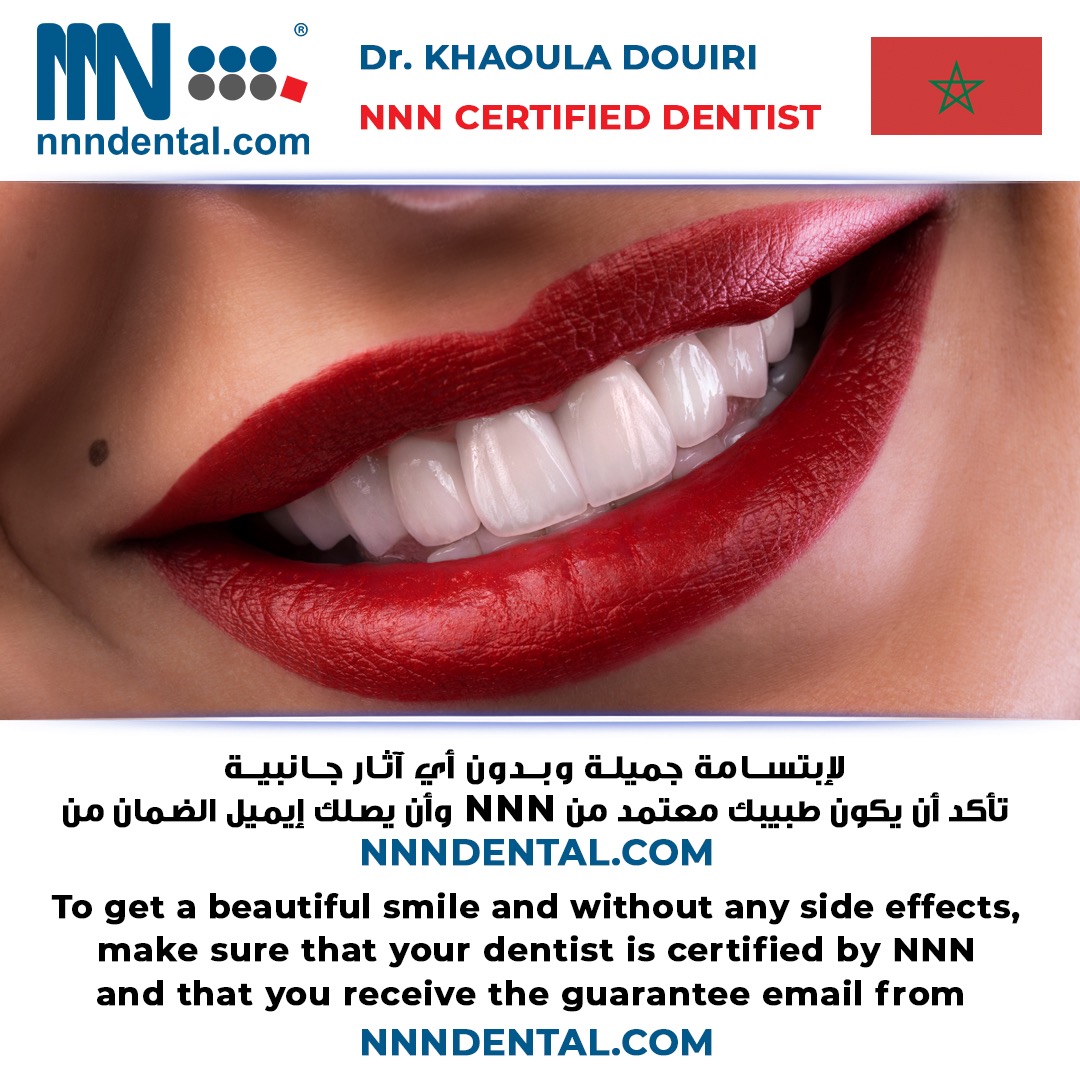 Discover the expertise of Dr. Khaoula Douiri, a proud NNN Certified Dentist leading Royal Dental Clinic in Tetouan. With a commitment to excellence, Dr. Douiri brings over a decade of experience in dental care and orthodontic treatments, ensuring every patient receives a beautiful smile dental without any side effects. Recognized for her skill in dental implants and orthodontie traitement, she upholds the highest standards of safety and quality, embodying the Royal Way of Healing.